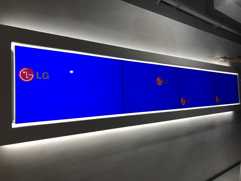 深圳龍崗區(qū)創(chuàng)投大廈大廳展示LG49寸1X4拼接屏案例展示